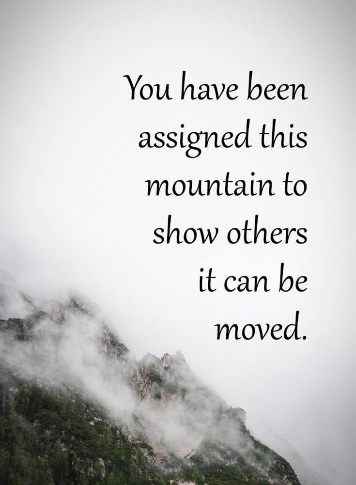 Be courageous today, take on the assignment you have put off for so long. Relocate, Rewrite those goals and then START. Always keeping this in mind, amongst other reasons, “You have been assigned this mountain to show others it can be moved”.